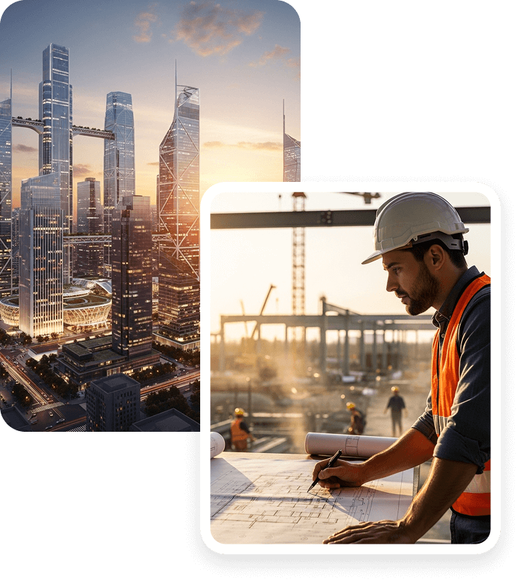 بناء المرافق والمباني والبنية التحتية، بما في ذلك الخرسانات للمنشآت الكبرى مثل الكباري، الأنفاق، وخزانات المياه، بواسطة فريق متخصص